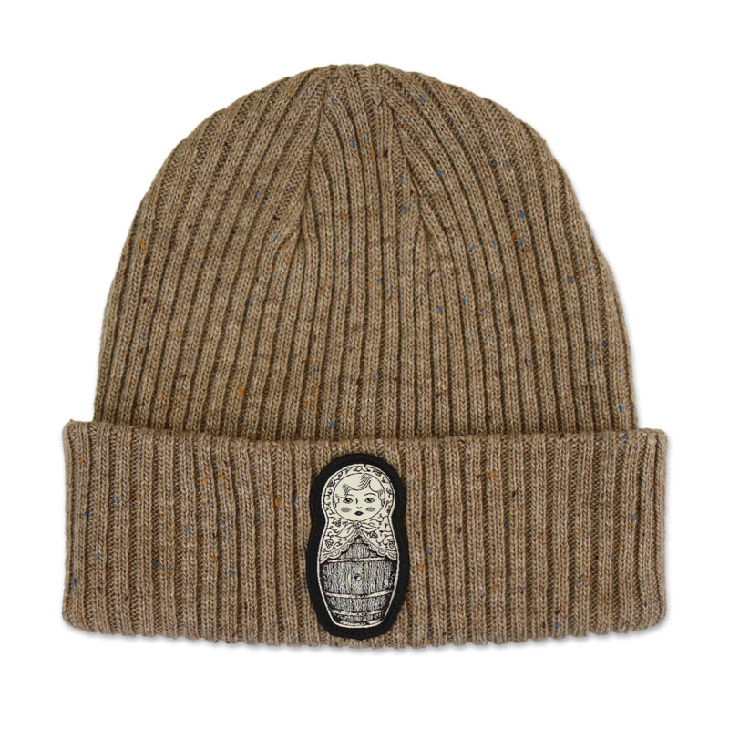 100% Acrylic rib knit beanie with speckled yarn.